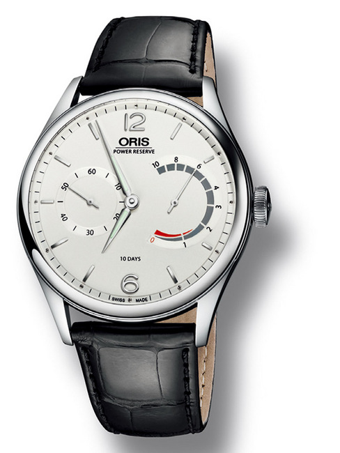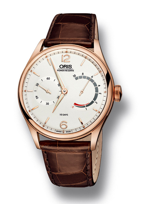 Cal. 110这次搭载在同款两式的表款上,一钢一玫瑰金。表款在型录上虽然是归在Artelier系列下,不过从表耳的线条看来更接近Artix。表径43mm,以正装表来说偏大,不过这一方面应该也是为了配合机芯本身的大尺寸。表面除了简单的小叁针,最醒目的就是右半边超大的动力储存显示,小秒盘和储能显示的刻度都做了立体的层次和刻纹,设计的品味相当不错。两种材质分别限量110 只,以ORIS来说算是相当少量的了。