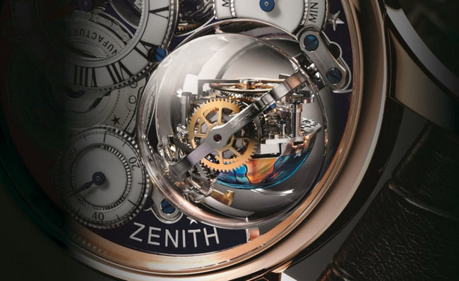 在整个动力储存过程中,动力弹簧通过捲曲在发条盒周围的链条将能量传输至宝塔。宝塔通过校正张力误差,获得均衡动力,并将其分配至齿轮组,以及位于陀螺仪框架内的硅质擒纵轮上。发条盒採用极为引人注目的上链桿方式上链,而链条需要经过50小时(动力储存释放的过程)才逐渐在发条盒周围卷上。随后,宝塔和发条盒在数秒内逆时针方向转动,以使链条能再次在宝塔周围卷上。宝塔形状经ZENITH制表大师精心设计,以便将最大限度的动力传输至发条盒。在制作流程的每个步骤中,宝塔的凹槽及其独特规格均经过天衣无缝的巧妙计算。若非ZENITH制表厂的所有工序部门通力合作(尤其是制作机芯样板的部门)和採用精密设备加工,宝塔不可能如此顺利问世,这也是综合制表厂的优势之一。