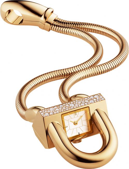 极致时尚的Cadenas Sertie镶钻手表备有黄K金及白K金款式。表壳顶端 及鱷鱼皮表带饰件以雪花式镶嵌钻石,炫彩夺目动人。Cadenas Sertie镶钻手表亦备有金质表链版本,表壳顶端同样饰有雪花 式镶嵌钻石。其双圈圆柱形表链独特非凡,呼应原设计细致优雅的珠宝美学。以浑圆嫵媚的弧线勾勒的Cadenas Sertie Bracelet Or金质手链镶钻手表,备有白K金及黄K金两个臻美款式。