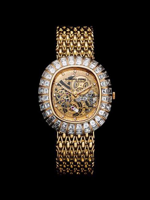 鏤空或鏤雕手表是指手表的机芯底板经过最大限度的精确切除,以展示机械机芯的构造之美。自1920年代起,爱彼既已开始鏤空手表的制作,表厂制表师专注于此类精密时计的制作。这款手表採用超薄机械机芯,表圈装饰56颗长方形切割美钻,钻石总重约6.4克拉。