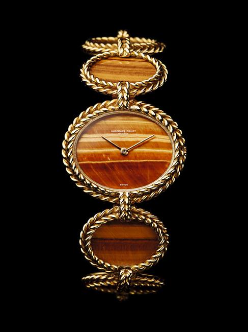 这枚手表是爱彼在1970年代早期设计、极具想象力的代表作之一。精雕细琢的虎眼石之外,表殻和超薄机械机芯均以手工润饰,体现出高超功力和技术。