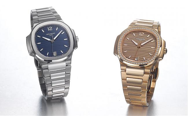 Nautilus这般如雕塑、结构坚固的个性表款,早在1970年就已推出,随着时间的更迭以及36mm尺寸的出新,这款手表便跃升为经典款式之一。而后此系列随着各种款式的加入而扩大,也造就后来的女款加以贵金属、镶嵌宝石的设计出现,证实此系列除了可与休閒服搭配也能与晚礼服搭配。2015年Nautilus再推新款,多只手表分别以不同的材质以及面盘设计各表千秋。蓝面7118/1A-001不锈钢女表富有静謐的深邃美感,与先前的男表5711/1A 010表感相似,略粗的时标变得纤细,日期也由九点鐘方向改为六点鐘方向。手表两侧的两个表耳不锈钢结构、以及面盘上的水波纹路令人联想起船隻舷窗。虽材质选用不锈钢制作,但经典的圆滑八角形表壳让看似结构结实的骨架,带有优雅的味道。铰鍊式表带仍为一大特色,品牌对于细节的处理一直相当注重,表壳以及表鍊所有的稜角均经过细致打磨拋光成弧状镜面,修饰的平整滑顺。内装部分搭载的为人手打造的324 SC自动上鍊机芯,机芯上还刻有品牌特殊标誌,对细节极为讲究。另还有暖色调表款选择7118/1200R-010,此表与前只手表都为35.2mm的表径尺寸,玫瑰金材质与咖啡色调乳白色相间的波浪面盘,让表款更显贵气,同样地,涂覆萤光涂层时标从中跳出指示时间。另外表圈部分镶嵌56颗钻石,璀璨的钻石与玫瑰金映衬雍容大方。表壳巧妙分为两部分,每一部分和表带都融为一体,且被位于两旁「关节」处的四个螺钉固定,这使手表拥有完美的防水性,而且能阻挡环境中的灰尘、湿度和热气。运动细节仍深藏其中,除了壮硕的表感外,鍊带採取双安全体系的摺叠式表扣,方便佩戴也让手表设计更趋于完美,为一只动感又兼具优雅的表款选项。