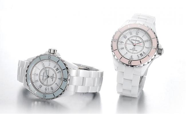 到了2015年,品牌为J12系列手表添上新装,首次将叁种全新的色彩应用在表圈上,分别推出淡蓝色、淡粉红色、薄荷绿色,为表圈绘上马卡龙般的可爱色彩,突显女性粉嫩柔和的特质。此外,品牌为了增添手表的可爱视觉效果,亦为秒针绘上与表圈相同的色彩,再搭配品牌J12系列标誌性的白色陶瓷,呈现出明亮柔和面貌。高科技陶瓷由氧化鋯和釔粉末组成,具有高度耐磨损、抗氧化、抗化学腐蚀、高折射率的性能。在分为10级的莫氏硬度标准中,高科技精密陶瓷的硬度为9。手表有搭载石英机芯,表径33mm及自动上鍊机芯,表径38mm两种版本,而自动上鍊机芯手表的面盘上有"AUTOMATIC"的字样,搭配可爱色彩,势必让女性们爱不释手。