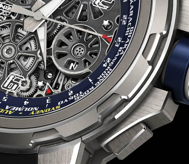 RM 63-02带有强烈运动风格,操作上来说也简单容易,动力储备则备有约50小时。此款式近日已于在墨西哥举办的SIAR(Salon International de Alta Relojeria)鐘表展上首次公开亮相。对于经常穿梭世界各地的旅行人士来说,能随时知道时间相当重要,甚至是能马上知晓遥远国家的当下时间,在作息上就能方便许多。
