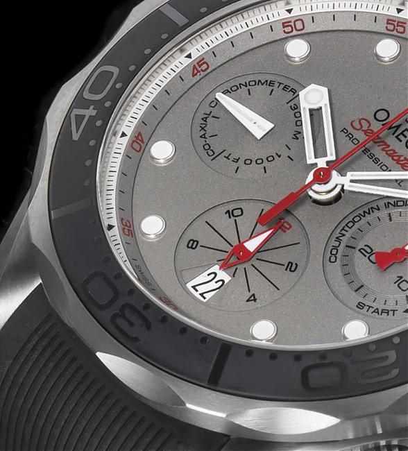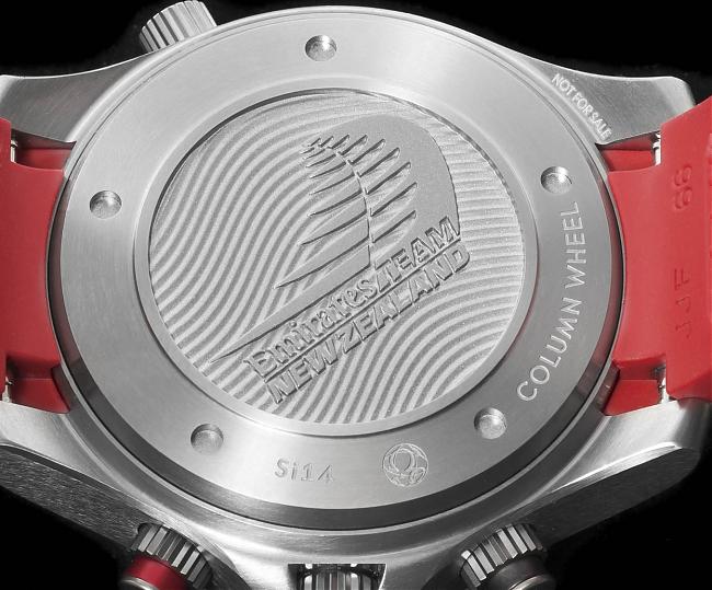 表款採用实底盖,底下搭载的是同轴擒纵的3330机芯。严格来说帆船赛需要的是海事表,用不着潜水表,不过表款仍然具备了300米的防水能力。