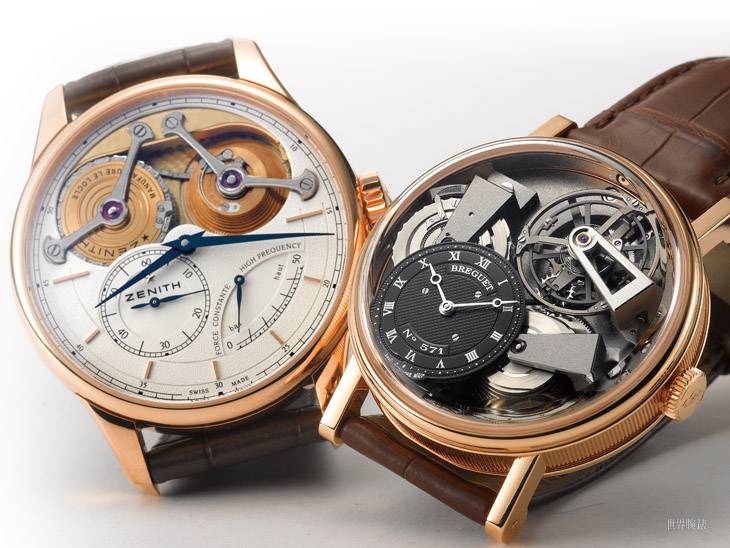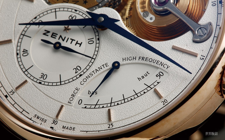 之前在哥伦布球体陀飞轮上加装的芝麻鍊有一部分遮掩在表面的子面盘下头,看起来稍嫌不够过癮,这次表款表面的上半部毫无遮蔽,发条盒、芝麻鍊和宝塔轮一览无遗,甚至可以说是目前市面上的芝麻鍊表款中露出最多、最直接的一款。让玩家可以尽情看个够。而且除了芝麻鍊之外,机芯的震频仍然是36,000vph的高转速,保持了ZENITH的品牌特色。