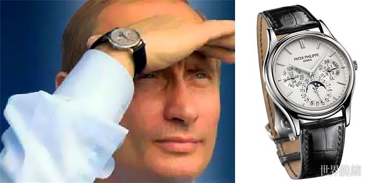 以领袖魅力闻名的俄国总统普丁其实据说对服装并不在意,但是对手表和领带却非常执着。除了出任总统后的「右手戴表」习惯风靡俄国政坛,普丁对名表的爱好也非常出名,据信他至少拥有11支世界顶级名表,品牌包含百达翡丽(PATEK PHILIPPE)、宝铂(BLANCPAIN)、宝璣(BREGUET)以及朗格(A. LANGE & SÖHNE)等;但也由于普丁佩戴的名表曾多次上镜,因此也成为反对派抨击他涉贪的佐证。
