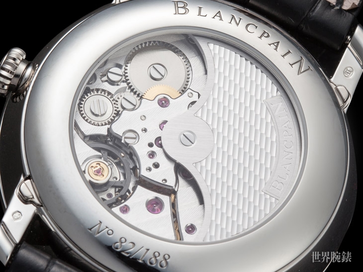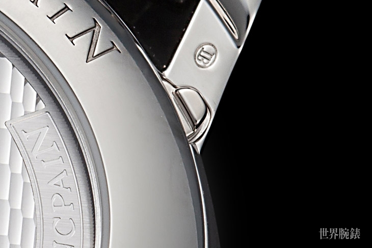 这只表款用上了BLANCPAIN专利的表耳下方隐藏式调校,不同于传统设于表壳侧边的方式,只需用手轻压表耳下四个隐藏式调校,俐落且简易的调整日期、月相显示,整体操作简易又快速。而且这个便利装置保留了双圈阶梯式流线型的表壳轮廓,不损经典的简约外型。