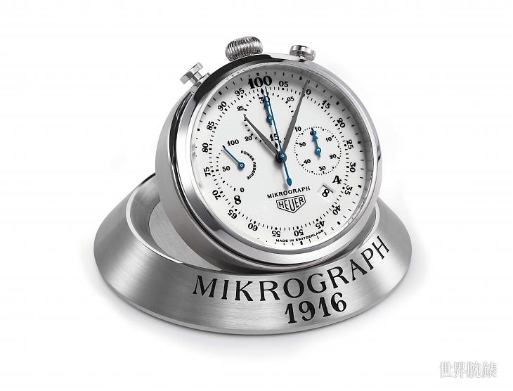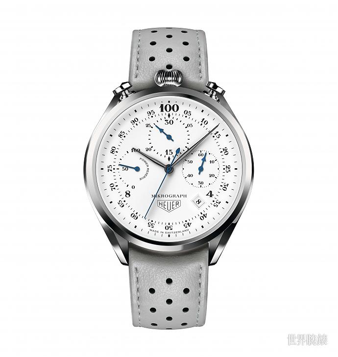 豪雅TAG Heuer 全新Carrera Mikrograph百週年纪念版计时码表,全球限量100只,它秉承原创表款经典风格,採白色漆面表盘和手绘数字,设计灵感源自当时的运动计时器,结合1920年代运动计时仪器的功能设计与革命性技术。具有精准、清晰可见、坚固耐用的特色。12点鐘位置上方的超大凹槽表冠,搭配左右两侧独特的大头按钮,令人联想起Heuer最初设计的计时器。