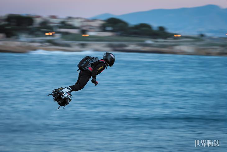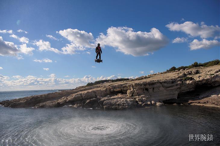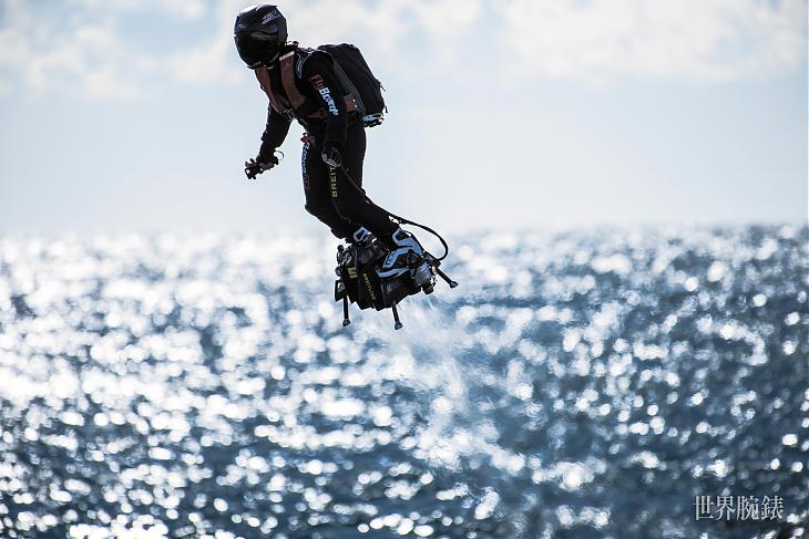 一向致力支持各式各样飞行运动及表演的瑞士专业飞行表品牌百年灵Breitling,除了拥有全球唯一非军方的喷射机特技飞行队伍 (Breiting Jet Team) 及空中漫步飞行表演队 (Breilting Wingwalker),也参与世界各地不同的飞行比赛及巡迴表演,同时支持及赞助不少其他的飞行及空中活动,而这当中便包括法国前水上电单车冠军Franky Zapata (萨帕塔) 的最新研发项目Flyboard® Air水上飞行悬浮滑板。