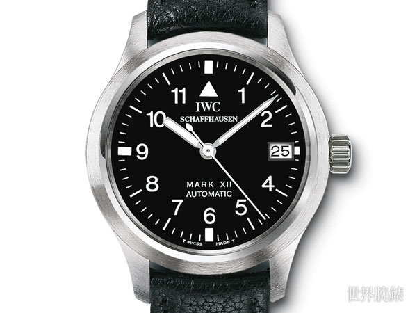 ▲IWC Mark XII飞行员自动腕表,马克系列黑色的面盘搭配白色的数字时标,经典的面盘设计易于读取时间。