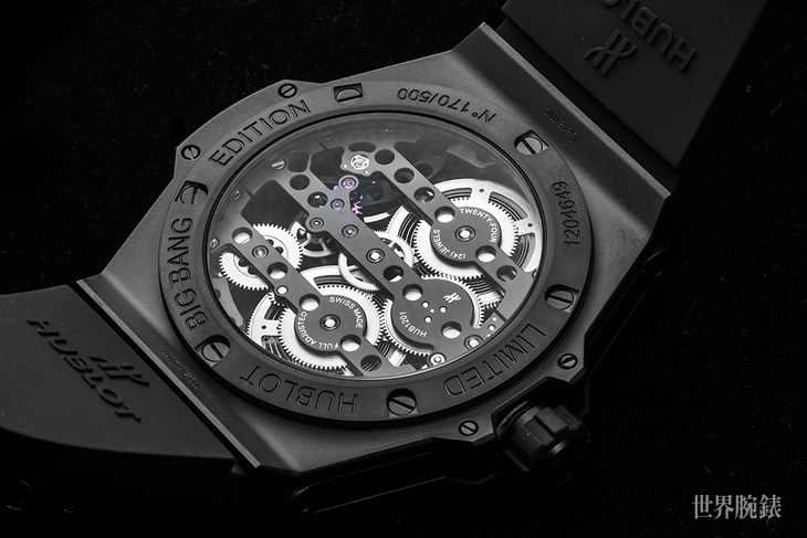 ▲ 无论是表款正面还是背面都皆能透过蓝宝石水晶玻璃欣赏HUB1201机芯的精巧的结构。
