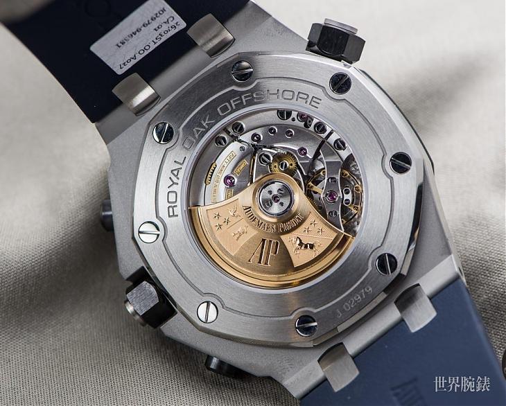 ▲透过蓝宝石底盖可以一览AP自制3124/3841自动上鍊机芯,同时表背也鎸刻皇家橡树离岸型字样