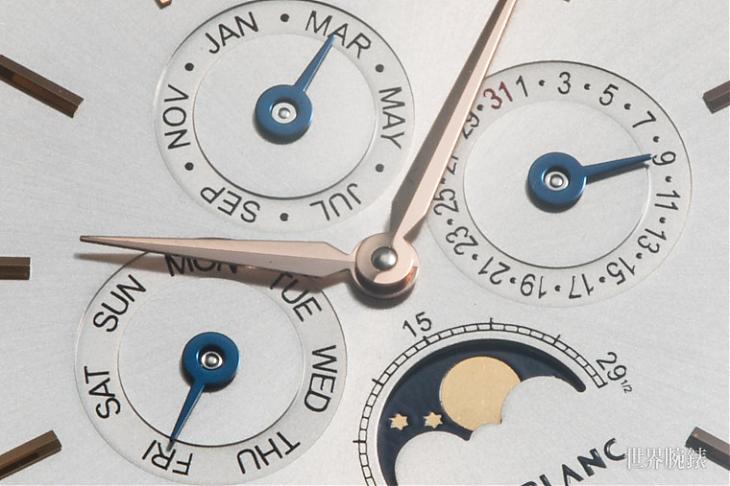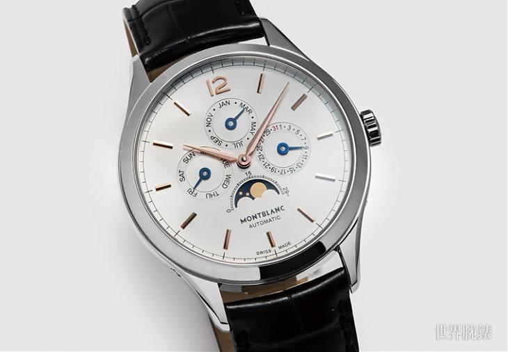 最后是关键的定价,年历和万年历同样都有分不锈钢和玫瑰金,而「年历的玫瑰金款」差不多刚好就等于「万年历的不锈钢款」,由此形成清楚的阶差,除了入门和顶级,买表人来到中段的时候可以评估自己是要「功能简单/外装高档」还是「功能完整/外装朴素」,逻辑相当有条理;当然,万宝龙年历和万年历分属Heritage Chronometrie和Heritage Spirit两个系列,设计稍有不同,不过相形之下价位仍然是更具影响力的要素。