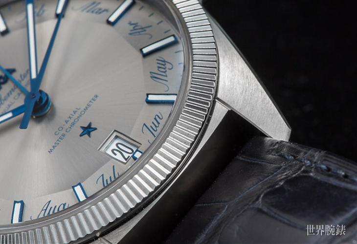 ▲坑纹表圈是Globemaster的另一个重要特徵,原本在表圈这等最容易受到碰撞的位置採用这种稜角分明的造型未必适合,不过OMEGA在这裡特别用上了高硬度的碳化钨,确保表圈不易留下伤痕。