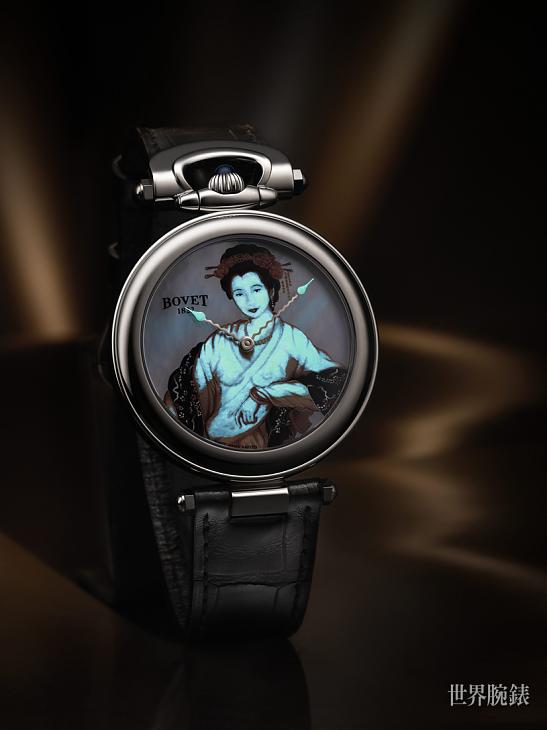 ▲BOVET为2017年的Only Watch打造了一只极富艺术价值的特别版腕表,面盘上的艺妓图案以大明火珐琅绘制而成,精致细腻又动人。