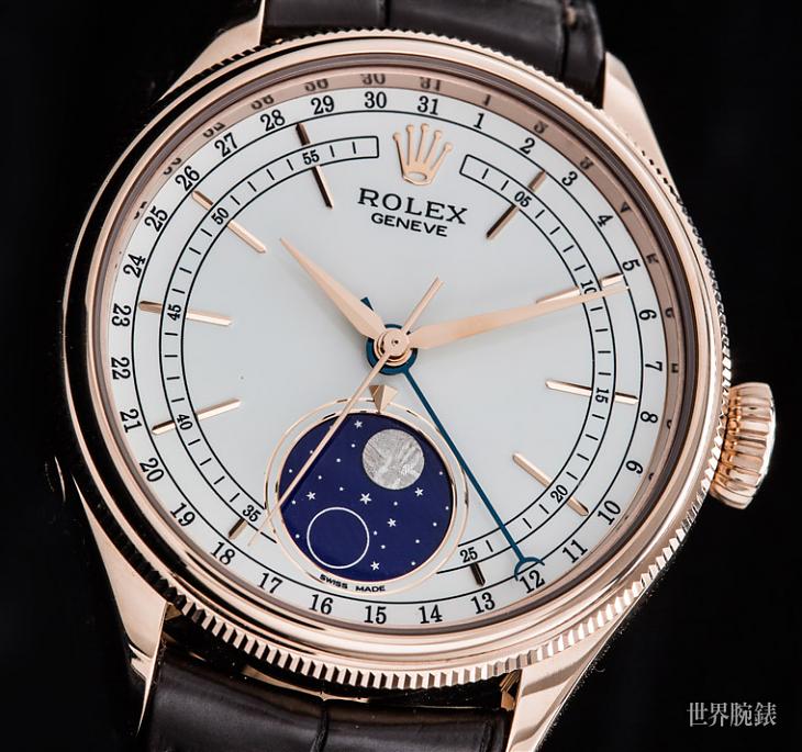 向来较少做复杂功能的劳力士,在2017年Cellini系列推出了睽违半世纪以上的月相功能,其实对劳来说,做不做复杂功能都不是重点,这在表坛就成了异数,劳力士多半以实用作为基础,因此产品线中很少看见复杂款,而且在劳皇的世界,计时、年历、月相这些被其他品牌作为小复杂款的功能,就已经是劳力士的复杂款。先前他们家别开生面在Cellini系列推出月相,可以有几种解释,一来是Cellini系列的开枝散叶,二来是劳皇对Cellini系列的重新整合,Cellini系列的外型经过几度变化,现在已蜕变成蚝式防水结构搭配自动机芯的面貌,而短期之内劳在其他系列加入月相功能的可能性微乎其微,因此这款Cellini Moonphase有后势看涨的潜力。