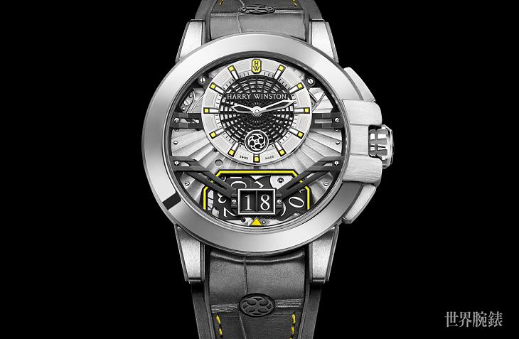 海洋Ocean系列大日期腕表Only Watch特别款配备直径42毫米的18K白金材质表壳,散发阳刚气概和运动时尚感,6点鐘位置的大型日期显示窗与海瑞温斯顿标誌性的偏心时分盘相得益彰。面盘和表带上点缀黄色调,与2017年Only Watch拍卖会的主题色相呼应。此外,为使腕表在黑暗中清晰易读,时标末端、12点鐘位置海瑞温斯顿品牌标誌和大型日期显示窗外框点缀黄色,且均经过磷光材质处理,可以在黑暗环境中散发出持久的蓝色光芒。