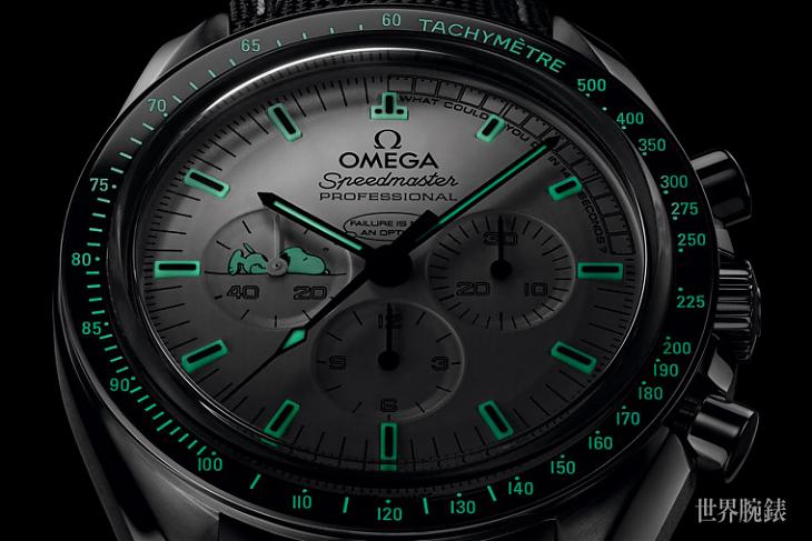 表面中央鐫刻另一句名言:”Failure is not an option”(不容有失)。这佳句出自1995年电影《太阳神13号》(Apollo 13) 中饰演太阳神13号任务主管Gene Kranz的Ed Harris。面盘另有细小的夜光史努比图案,正在甜睡的牠躺在9时位置的小秒针表盘上,就像在梦裡唸着太空任务的那句名言。