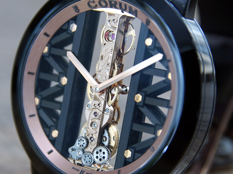 黑色DLC钛金属材质/CO 113手动上链机芯/时、分显示/蓝宝石水晶镜面、透明底盖/防水30米/表径43mm