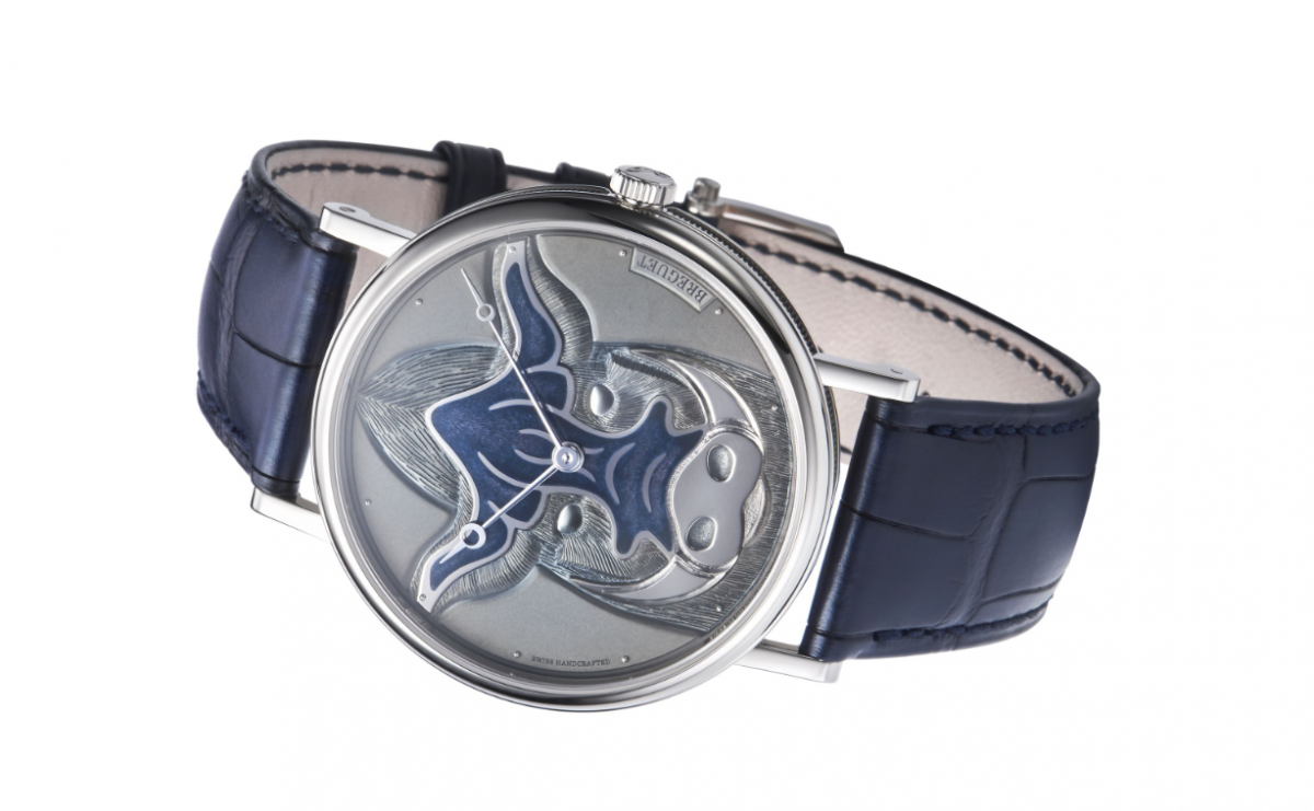 最后採用宝璣先生钟爱的工艺——手工鐫刻雕花,以精湛技术突显限量表款猪首毛髮细节,为面盘画龙点睛。表壳格外纤薄,搭载厚度仅有 2.4 毫米的自动上链机芯。搭配蓝色皮革表带,更显大器非凡。