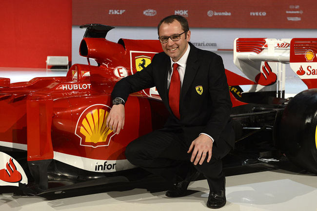 ▲ 法拉利车队经理Stefano Domenicali与标誌有"HUBLOT"的赛车开心合影。