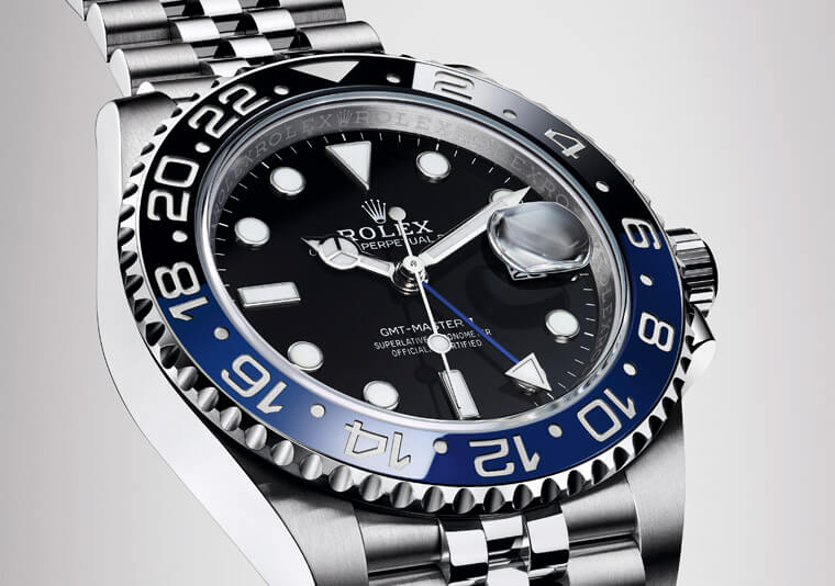先来复习一下GMT手表的面盘显示,就以劳力士的GMT-Master II为例,首先它的面盘中央会有宾士针在内的大三针,搭配面盘外缘的几何时标指示所在地时间,这部分大家绝对没有问题(附带一提,面盘3点方向的日期显示的也是所在地的日期),而第二地时间(通常就是指佩戴者的出发地)就是当表圈的倒三角形指标位于12点方向时,再借助中央第四根带有箭头状的24小时指针对照表圈上的刻度来判别出发地时间。