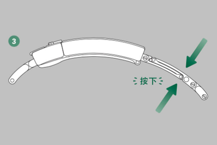 3.同时按压延展链节的两面,这时链带就能牢固扣好