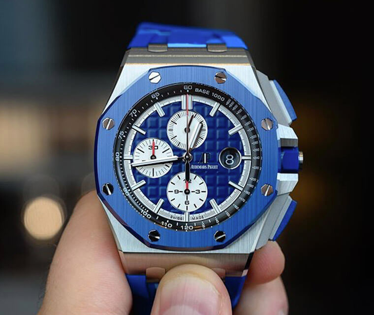 ▲爱彼是表坛研发陶瓷材质的先锋之一,近年虽然比较少着墨在陶瓷材质,但自从2018年的绿陶瓷之后,2019年再有蓝陶瓷这样的新色,让人感到耳目一新。图片:watchcollectinglifestyle.com