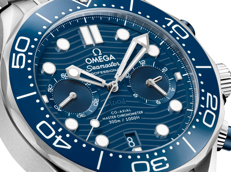 ▲陶瓷圈、陶瓷按把、陶瓷面盘,加上回复面盘的波浪纹装饰,种种的细节改造都是自从2018年以来欧米茄赋予新版海马潜水300米的特徵。