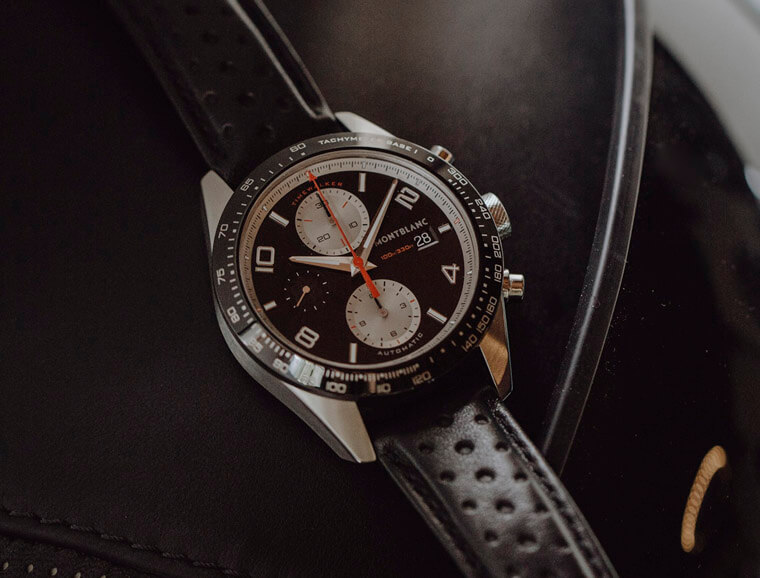 如果喜欢迪通拿有的计时功能,那麼万宝龙的计时机芯出自名厂Minerva手笔,品质也是有目共睹的,而TimeWalker系列自从这几年改款后常以黑面或白面黑表盘的「熊猫面」示人,熊猫面与赛车表有着一段密不可分的关系,加上黑白配色也保险耐看,长期以来一直是颇受欢迎的设计元素。至于万宝龙2019年推出的TimeWalker系列新作也延续这样的风格,不过有别于白底黑表盘的熊猫面,此次新款TimeWalker系列计时码表使用的黑底白表盘的「反熊猫面」,一样对比鲜明的面盘呈现出另一种个性。TimeWalker计时码表41mm款式搭载MB 25.07机芯,在面盘的格局属于左三眼形式,万宝龙刻意将9点方向的小表盘涂黑,中间再加上品牌的六芒星Logo,使得表款乍看之下犹如双眼设计,在视觉效果上有自己的特色和巧思。