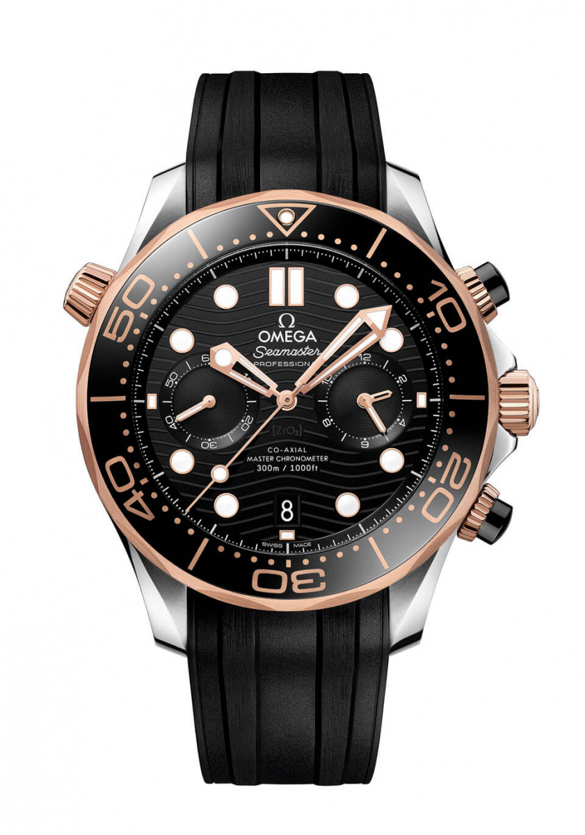 除此之外,OMEGA还将海马潜水300米升级,推出全新海马潜水300米计时码表,而且初登场就备齐了各种材质与配色,一次满足表迷们的心愿。潜水表本以深受表迷们喜爱,如今再添加计时码表功能,更是让海马潜水300米更加所向披靡。基本上,生活中配戴这只表完全足矣。而全新海马潜水300米计时码表以不锈钢材质打造,搭配陶瓷表圈、面盘,以及Ceragold™瓷金潜水刻度。面盘同样拥有雷射鐫刻的波浪纹、日期视窗一样移至6点钟位置、10点方向的排氦阀门造型与三针款相同。与三针款不同的是,因为计时码表搭载9900机芯,所以计时码表的表径略大、面盘也有更多空间容纳计时相关显示。而表壳右侧的两枚旋入式计时按把部分则由与表圈同色的陶瓷材质制成,令按把表面的防刮保护性有所提升。另外,OMEGA也在本系列中推出一款较为亮眼、以18K Sedna™金打造的半金款。它的表圈为18K Sedna™、表冠、计时按把以及排氦阀等也採用同样的贵金属材质。为了提升耐用性,品牌在计时按把的部分额外加上陶瓷材质,因此18K Sedna™金的海马潜水300米计时码表的色调多元,相当吸睛。戴的出门、下的了海、戴着它,一表底百只。