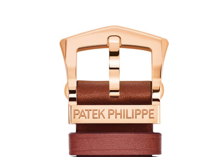▲百达翡丽的高级制表风范体现在高质感小牛皮表带以及U形玫瑰金针扣等细节之中,佩戴于腕上除了别具气质之外,也能呼应表壳的高雅大器。