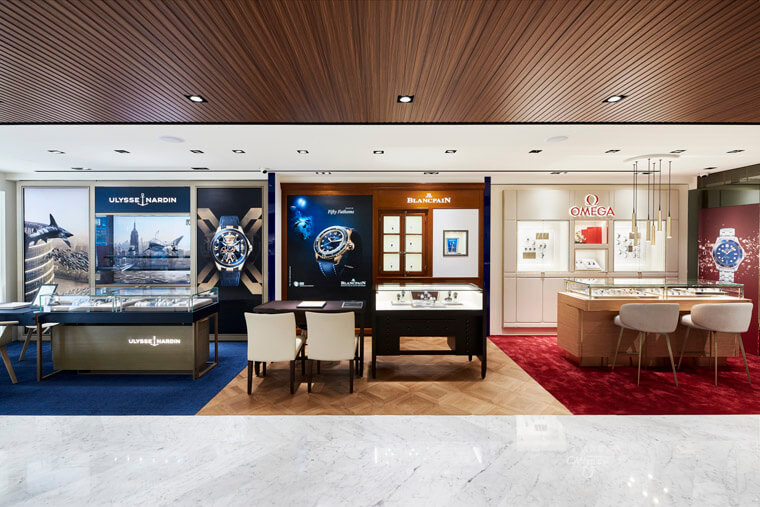 至于台北忠孝店内的重点——各大钟表品牌也都以全球形象概念专柜区展现自我特色,包括BELL & ROSS柏莱士、BLANCPAIN宝珀、CORUM昆仑表、GRAHAM葛雷汉、OMEGA欧米茄、ORIS、MONTBLANC万宝龙和ULYSSE NARDIN雅典表等国际知名品牌,爱表人士来此将能一窥瑞士高级制表工艺的精彩。