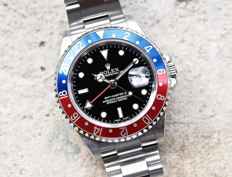 这几年钢壳的GMT-Master II已经大致完成了世代交替工程,包括换上陶瓷圈、改成32系机芯等等,因此原本铝圈并搭载3185或3186机芯的GMT-Master II也就随之停产,说到16710,它共有黑色表圈、百事圈(蓝红表圈)和可乐圈(红黑表圈)等版本,想当然其中最受欢迎的当然就是有原汁原味设计的百事圈,至于低调的黑色表圈在三款裡面行情一向殿后。16710这几年在二手市场行情有点像坐直升机一样高升,其中在2016~2017年之间,据知它的价格在短时间内从4,500美元~6,500美元翻了两番来到10,000美元~12,000美元,可见现在收藏家们有多哈这只停产款式。