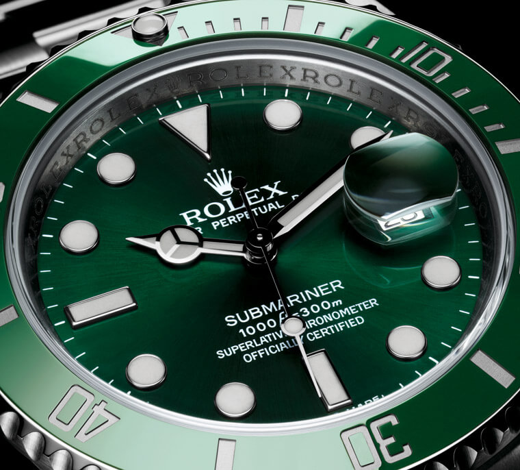 116610LV:由16610LV改款成116610LV,除了绿色表圈升级为Cerachrom陶瓷材质,就连面盘也同步换上绿色调,整只表绿油油的,搭配Submariner Date本身属于运动表的基调,因此国外表友习惯用复仇者联盟裡面的大块头浩克(Hulk)来形容116610LV。