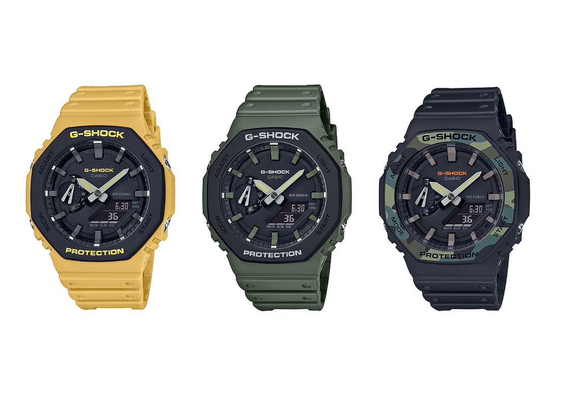 這款因為在外觀設計上有別於其他G-SHOCK腕錶,還因為八角造型隱隱帶點愛彼皇家橡樹系列的味道,而被廣大錶友取了個「農家橡樹」的暱稱。而此次街頭軍事系列的GA-2100SU和GA-2110SU,分別為這剛毅的外觀換上活潑的色彩,相信絕對會是很好的街頭穿搭單品。