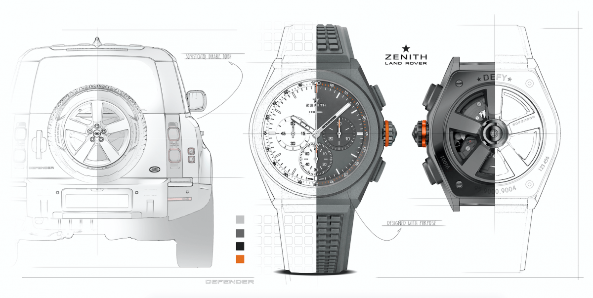 ▲聯名限量錶設計時草稿,可以看到手錶上的許多設計靈感來自於Defender。