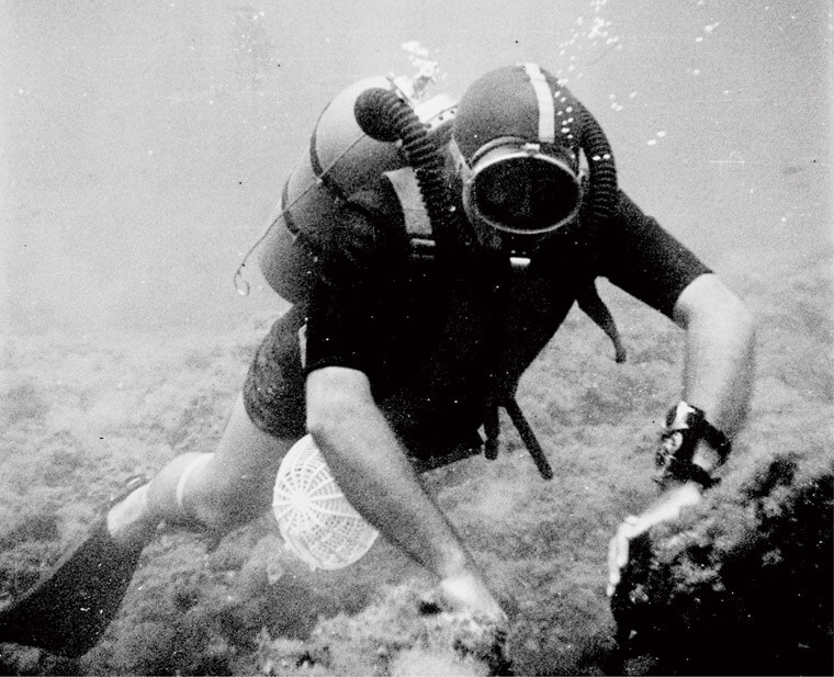 ▲1950年代寶珀執行長Jean-Jacques Fiechter是催生五十噚腕錶的關鍵人物,他曾實際佩戴五十噚腕錶潛入水中測試腕錶性能。