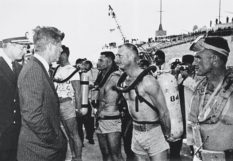 ▲美國甘迺迪總統1950年代會見美軍特種部隊時,他們手上便佩戴著五十噚Rayville Tornek潛水錶,顯見寶珀潛水錶的性能受到各國軍方的重視。