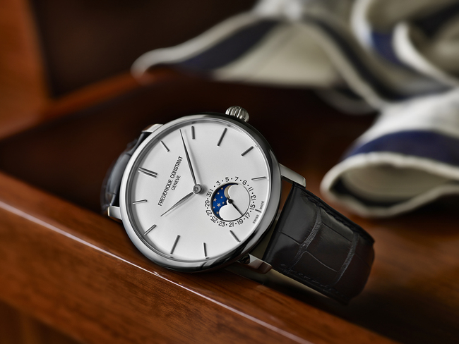 ▲ 康斯登的Slimline Moonphase Manufacture超薄月相自家機芯手錶,型號:FC-705V4S4。
