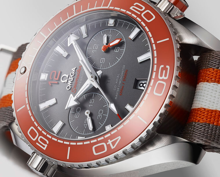 海馬Planet Ocean系列這款橘色陶瓷圈計時碼錶除了擁有更耐磨抗刮的陶瓷錶圈,它的灰色面盤也大有來頭,跟三針款的陶瓷面盤有別,Seamaster Planet Ocean 600M Chronograph採用的面盤材質是瓷化鈦金屬,搭配鍍銠指針與刻度以及3點鐘計盤清漆指針、鑲貼數字12與中央秒針尖端等橘色元素,進一步襯托瓷化鈦金屬面盤的視覺效果。錶款搭載的是9900大師天文台機芯,機芯通過比C.O.S.C.認證還要難過關的METAS認證,除了各方面性能不俗,它還能抵抗高達15,000高斯的磁力,換句話說,在一般佩戴情境下,腕錶錶幾乎不會有受磁的疑慮。
