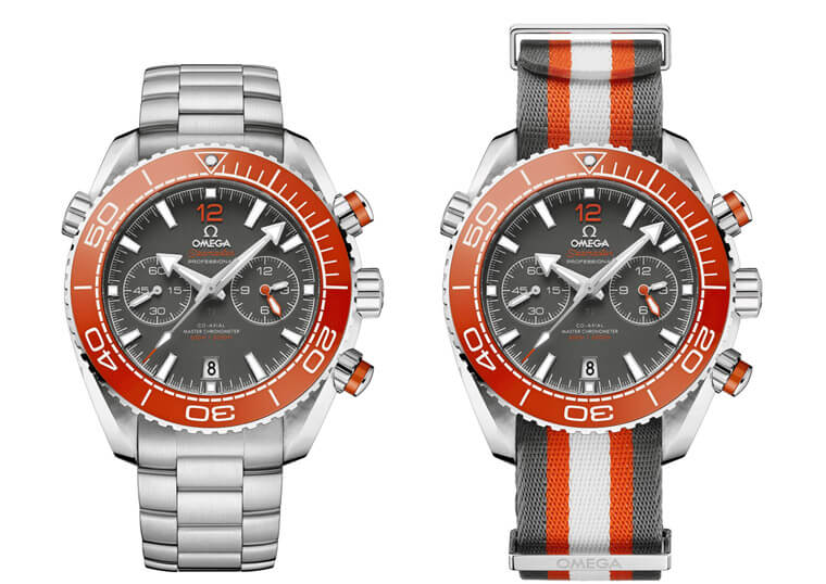 不過2019年歐米茄在一邊推出大量海馬潛水300米新款時,也不忘順便Carry一下Planet Ocean 600米,品牌當時一口氣推出了Planet Ocean 600米系列的三針款和計時款,它們有一個共同的主要亮點,也就是歐米茄先前從未看過的橘色陶瓷圈(Nemo橘),當然陶瓷圈手錶對品牌來說並不稀奇,不過先前倒是還沒出現過橘色這個很能代表Planet Ocean 600米的顏色,或者更正確地說應該是先前還沒出過橘色陶瓷圈的一般市售版,因為歐米茄曾在2014年發表鉑金錶殼搭配橘色陶瓷圈的Planet Ocean 600米限量錶,當時那款僅限量生產8只,在這之後有很長一段時間歐米茄都沒有再推出橘色陶瓷圈作品,直到這兩款Planet Ocean 600米出現。