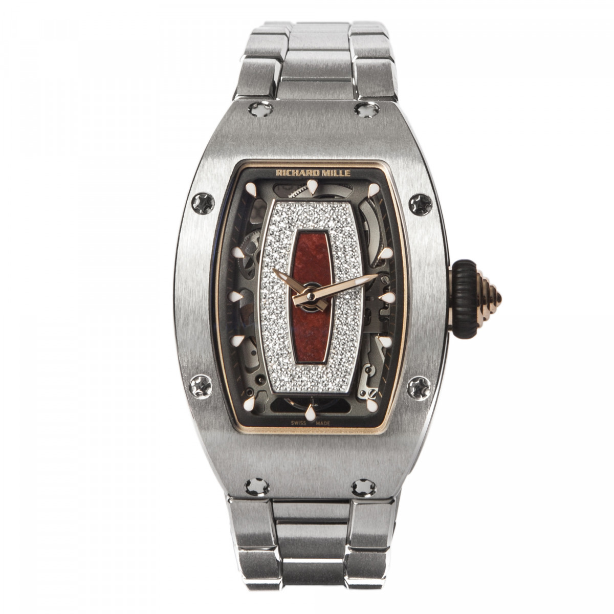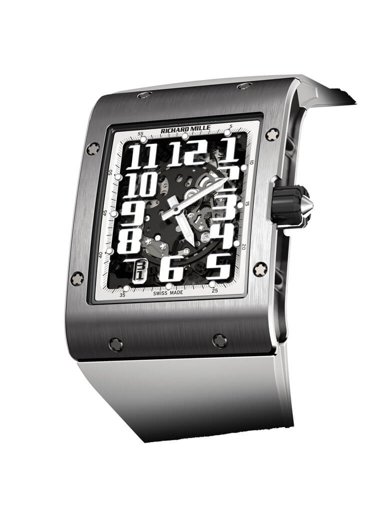 有別於前兩款的酒桶型錶殼,RM 016超薄方形自動錶為錶系列中首個擁有獨特的長方形錶殼,亦為整個RICHARD MILLE系列中最纖薄的型號。RM016只有8.25毫米厚,但亦擁有同樣緊貼手腕的弧度,保持RICHARD MILLE的原有概念及特徵,而設計上亦特意將數字加大來配合錶殼的大小,自然適合任何場合。手錶搭載RMAS7鏤空自動機芯,並提供鈦金屬、18K玫瑰金、18K白金及鑽石款式給市場選擇。