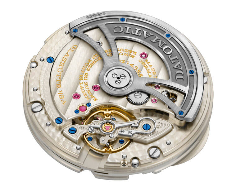 ▲錶款搭載的L155.1 Datomatic機芯展現更多運動錶的風格,例如自動上鍊、擺輪改採橫跨式橋板設計等,皆能優化手錶的穩定性和便利性。