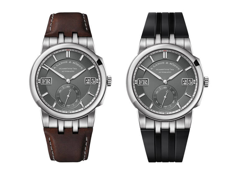 新款Odysseus採用白金材質製作40.5mm的錶殼,而有別於首款配置的金屬鍊帶,這款新作分別推出搭配皮錶帶或是「很不朗格」的黑色橡膠錶帶版本,尤其後者通常被認為是運動錶的標準配備,對以製作正裝錶為大宗的朗格來說原本就像是平行線,但既然2019年Odysseus都已經推出過不鏽鋼加上鍊帶的組合了,這次新推出橡膠錶帶好像也是剛好而已。