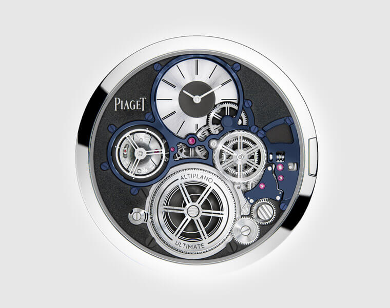 通常超薄錶有個關鍵祕訣在於降低機芯結構厚度,而要達成這個目的有個常見的方式就是削減機芯零件本身的厚度,這點在Altiplano Ultimate Concept身上也不例外,它的零件比起一般手錶都要更輕更薄,包括齒輪厚度從標準規格0.2mm降低到0.12mm、藍寶石水晶鏡面也直接打2折從1mm將到0.2mm的程度。