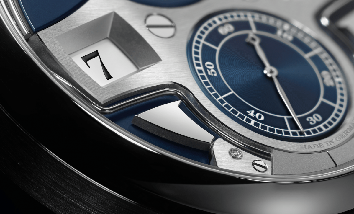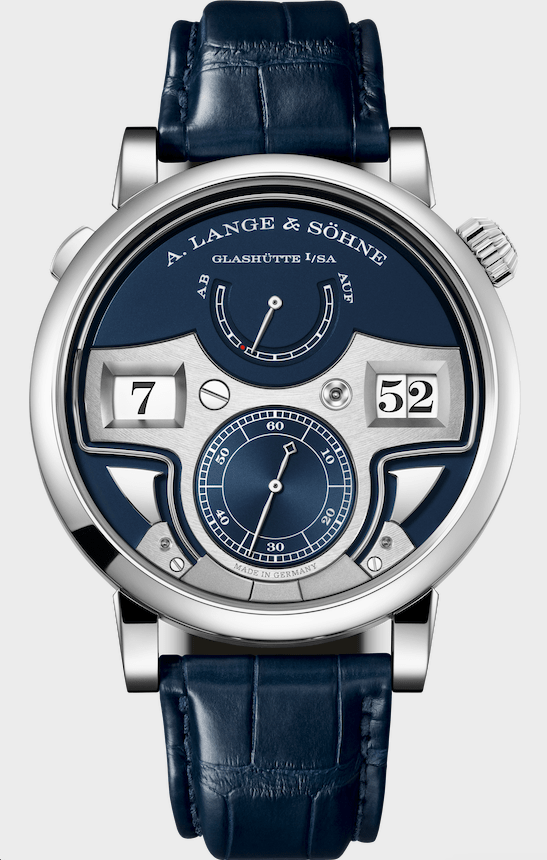 朗格於2015年推出的Zeitwerk Minute Repeater,是世上唯一一款結合機械跳字顯示和十進 制三問裝置的腕錶。這款錶精密複雜,單是組裝已需時數月,先前品牌只推出過鉑金950款。在面世五年後, 朗格為這款作品推出配備深藍色面盤的18K白金款式。