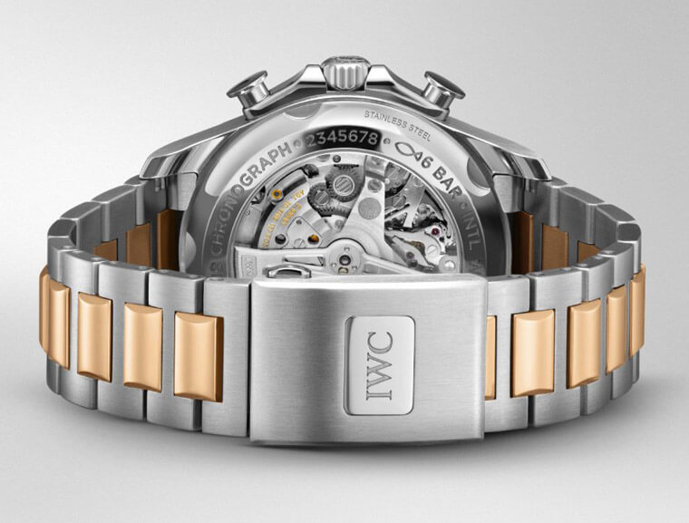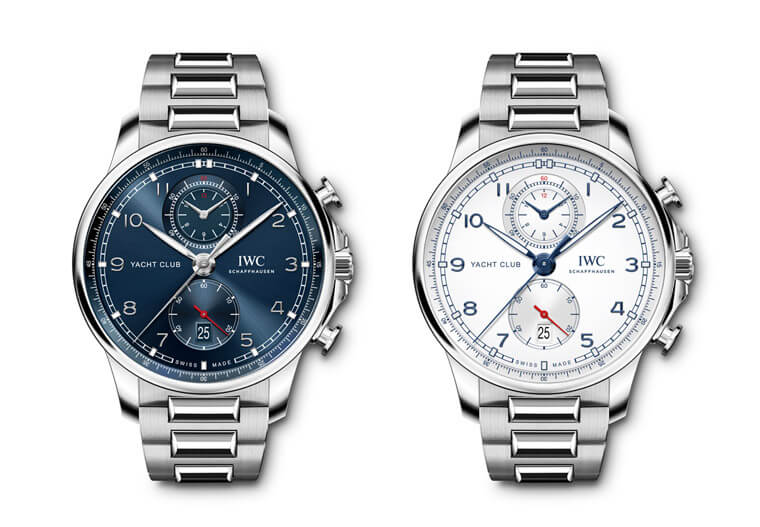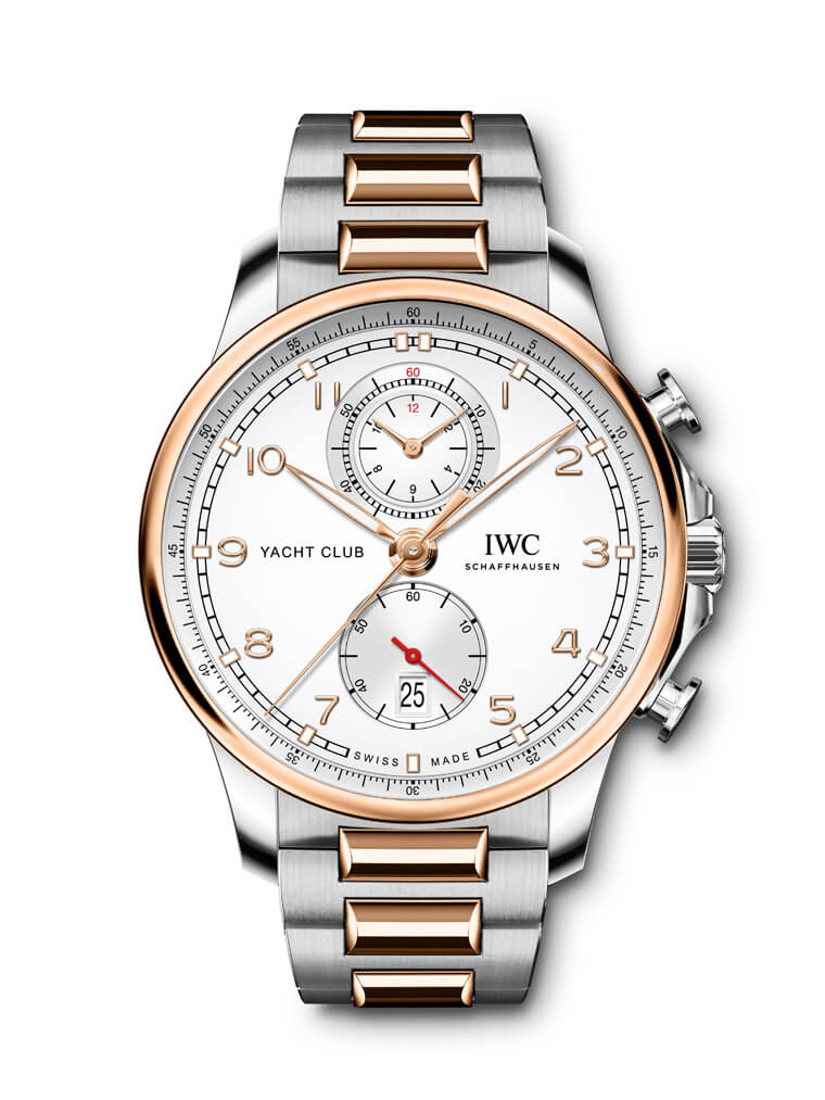 新款葡萄牙航海精英計時碼錶錶款尺寸稍微加大至44mm,IWC分別推出不鏽鋼(藍面、銀面)以及半金款式(銀面),一如系列的普遍設定,錶款的防水能力達到60米,此次新款葡萄牙航海精英計時碼錶搭載的鍊帶對於此系列而言饒富新意,因為大多數葡萄牙家族成員都是採用皮革錶帶(少部分航海精英是配置橡膠錶帶),這次IWC再在航海精英系列上別開生面導入鍊帶,展現出一番新氣象,鍊帶分別採用拋光與緞面處理,使其看起來更具層次感,其中半金款式部分它的鍊節中央零件與錶圈同為玫瑰金材質,隱約散發的高貴氣息有別於不鏽鋼款全然的陽剛味。