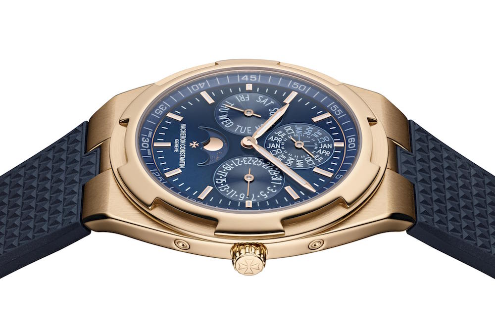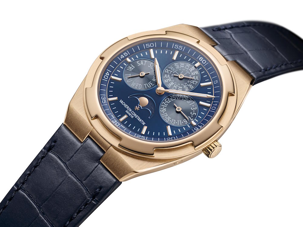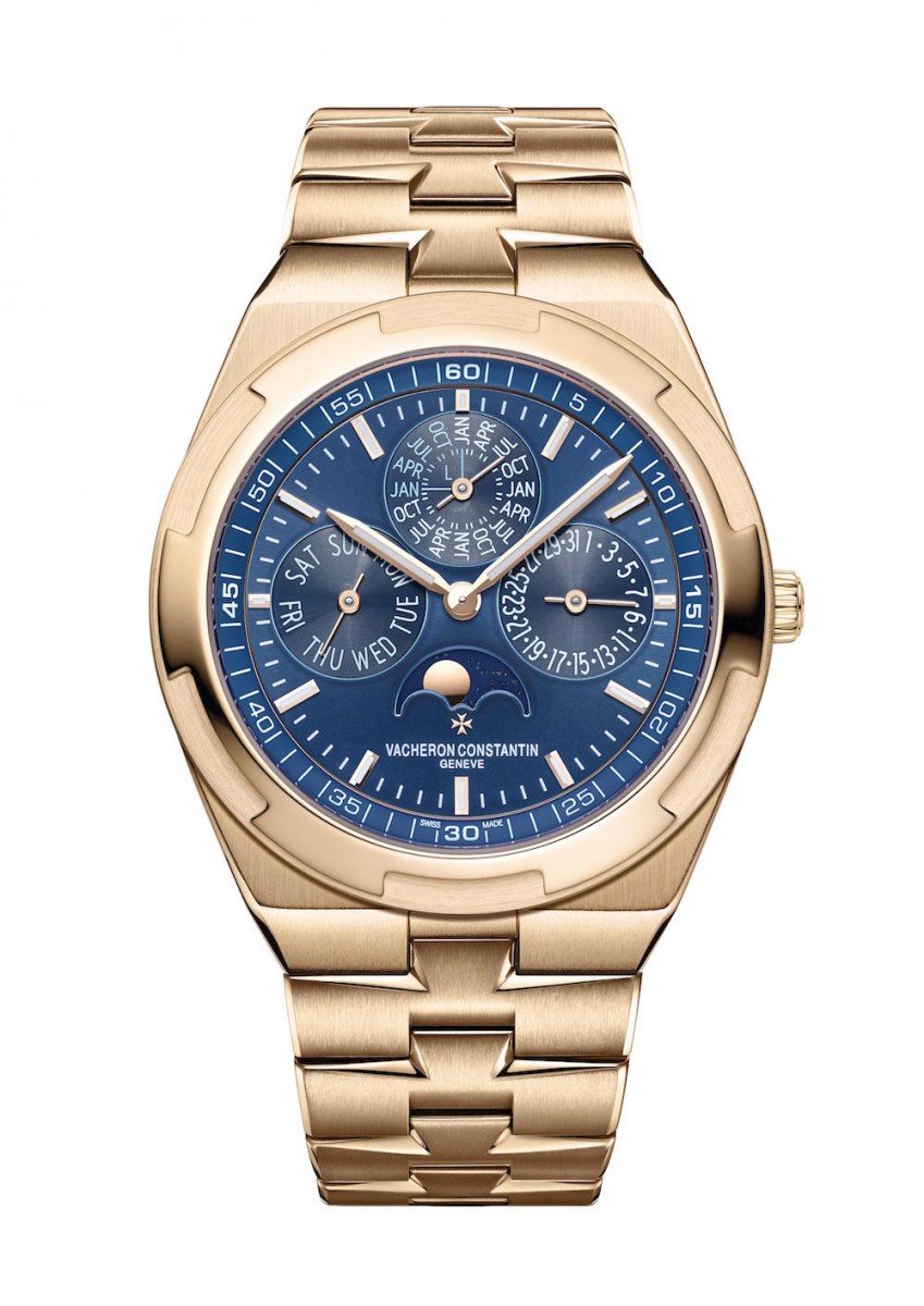 VACHERON CONSTANTIN江詩丹頓Overseas超薄萬年曆,在複雜運動錶中顯得特別薄,錶殼厚度僅有8.1mm,彰顯優雅運動風範。延續前一年的休閒優雅風格,仍舊是藍面玫瑰金的搭配,不過2020年新款推出全金版本,也就是多了一款採用貴金屬18K 5N玫瑰金打造錶鍊的款式,賦予佩戴者更鮮明的個性魅力。